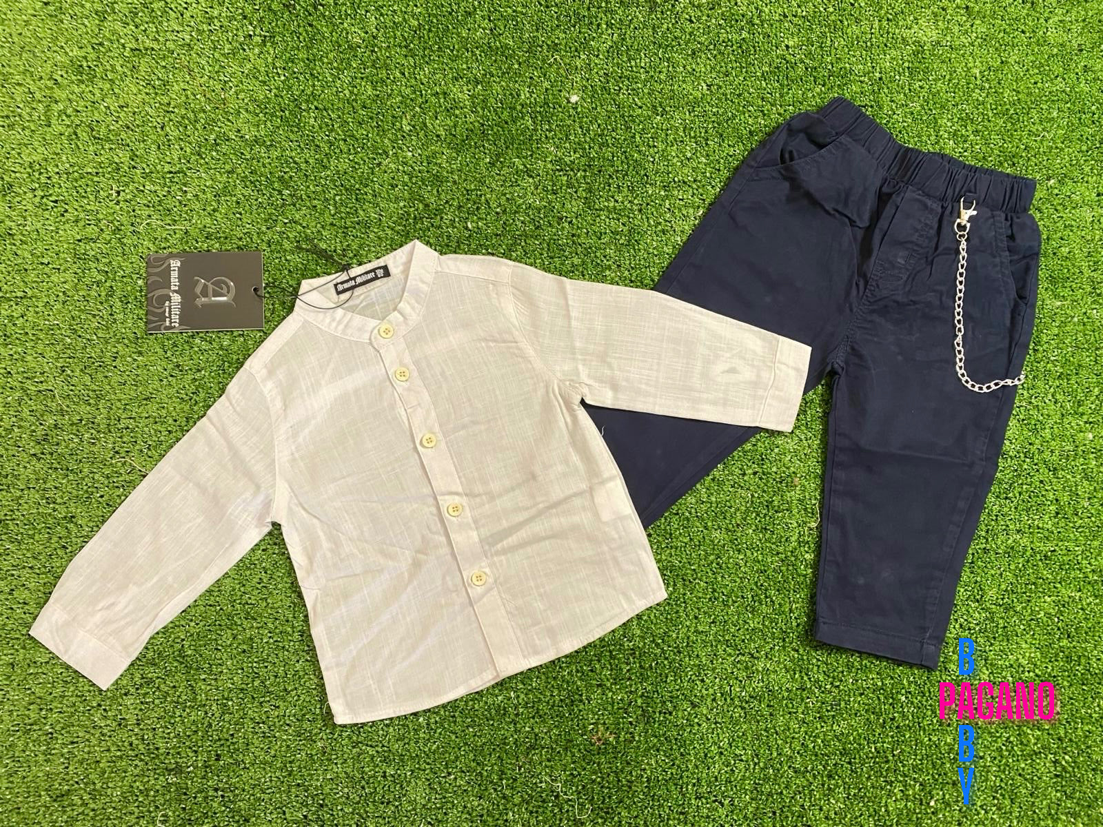 Completino ALVAR con camicia di lino con collo alla coreana e pantalone con elastico in vita