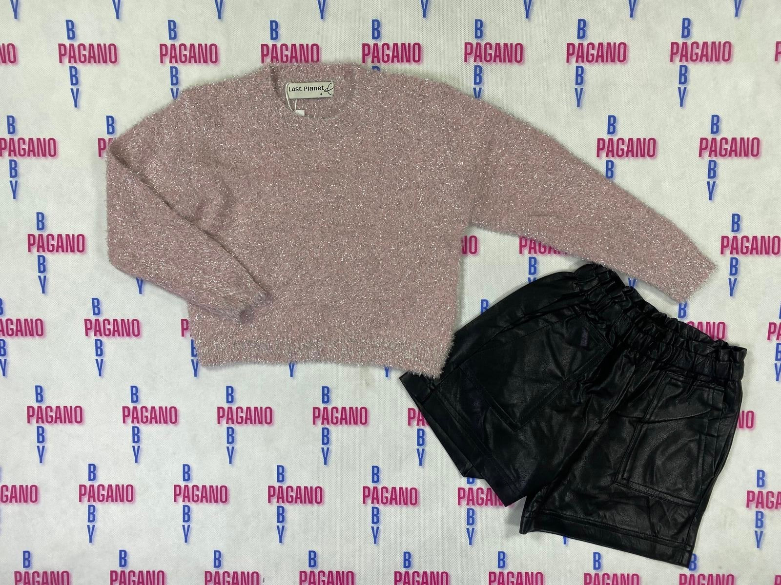Completino BATTI con shorts in eco pelle e maglioncino lurex