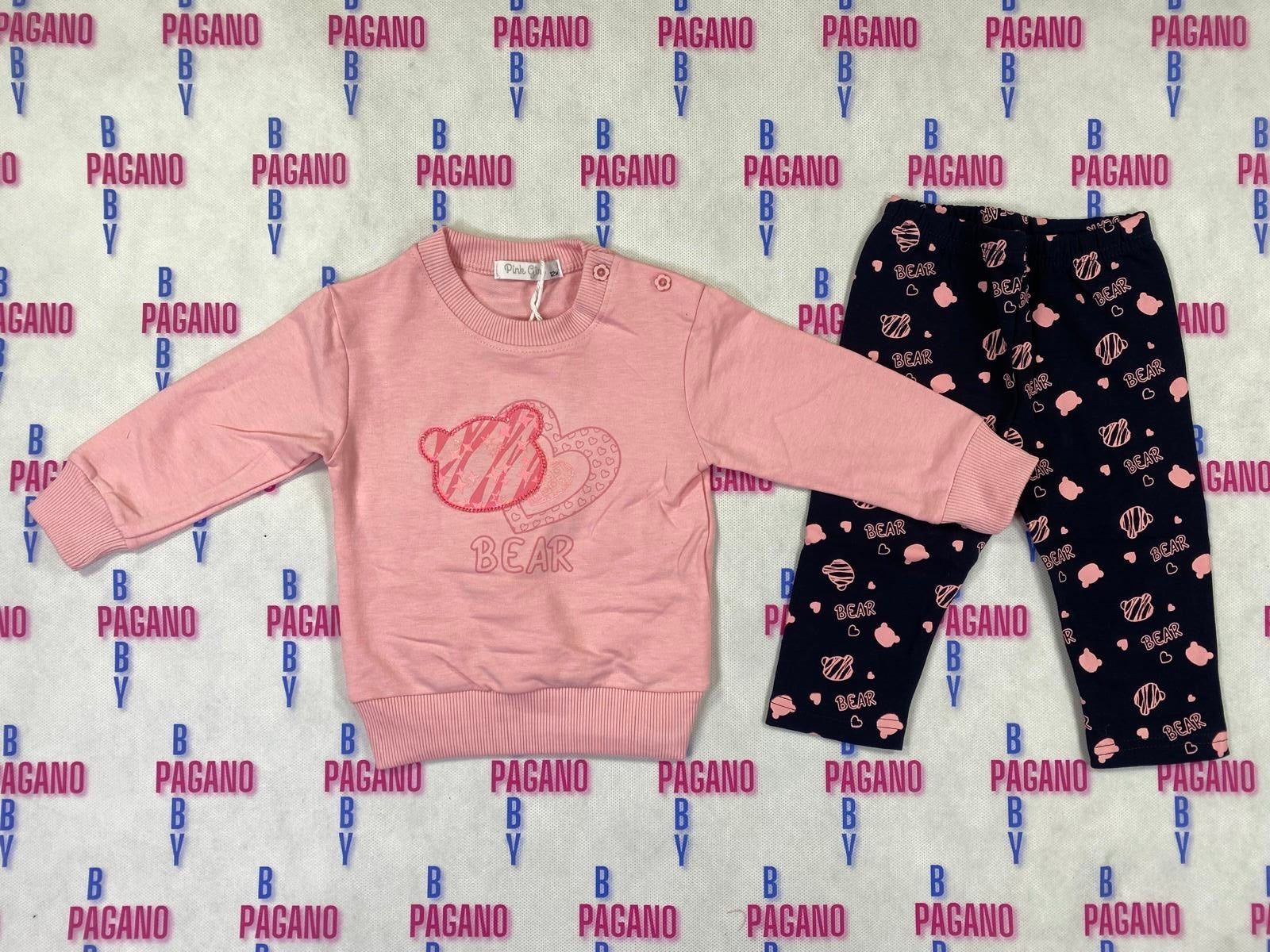 Completino BEAR HEART con leggings e felpa a girocollo entrambi in cotone felpato