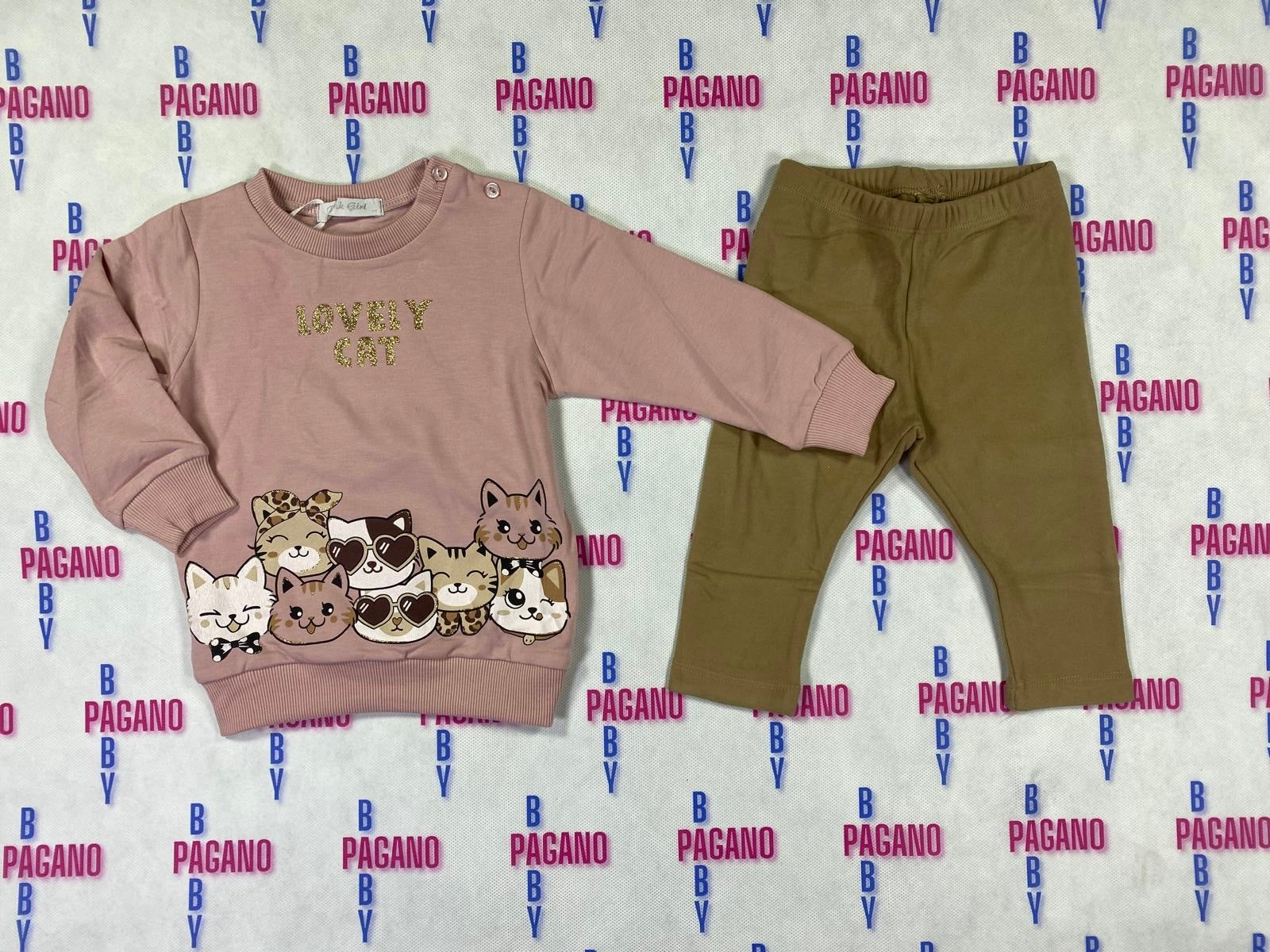 Completino I LOVE CAT con leggings e felpa a girocollo