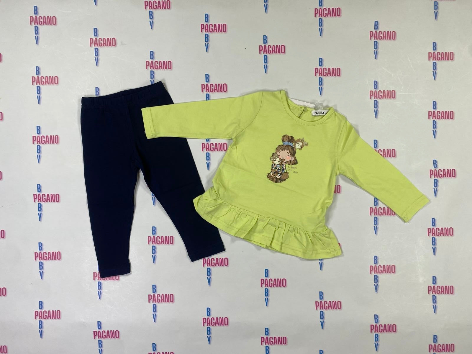 Completino INOULY con maglietta a girocollo e leggings a fantasia entrambi in cotone!