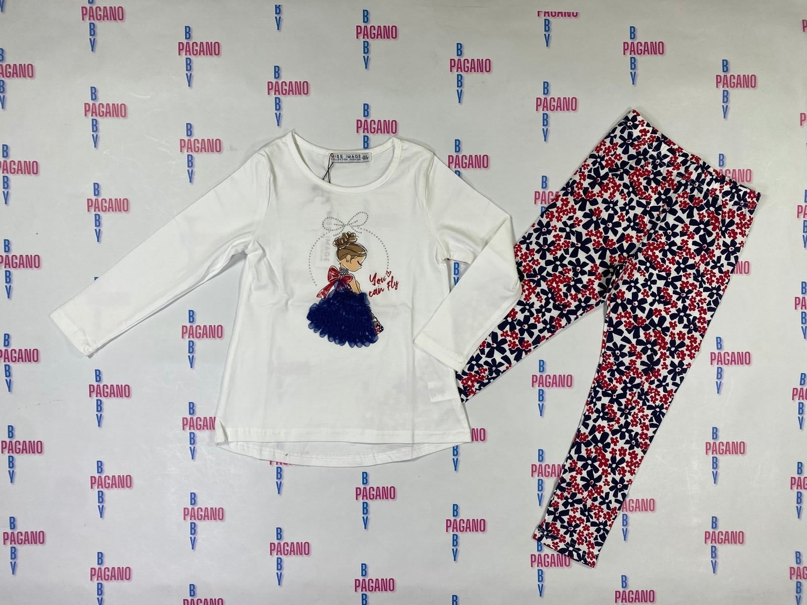 Completino MISS IMAGE DOLL con maglietta a girocollo e leggings a fantasia entrambi in cotone!