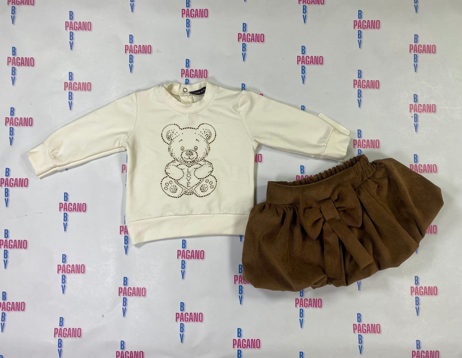 Completino TEDDY LOVE BROWN con gonna palloncino e felpina a girocollo