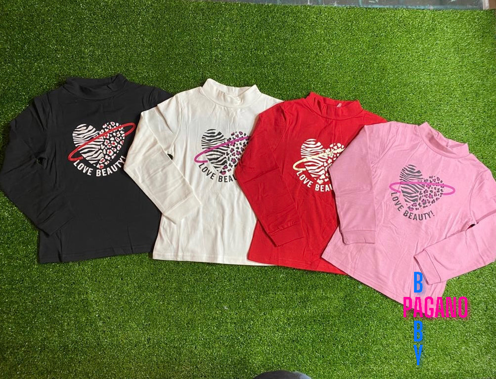 Lupetto LOVE BEAUTY! a mezzo collo in cotone felpato