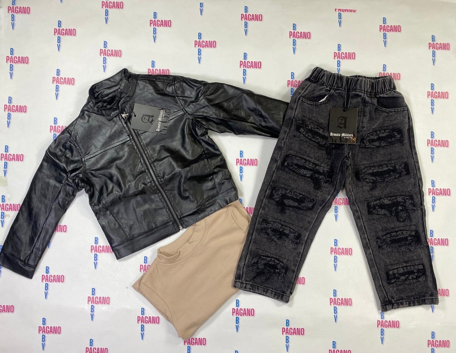 Set ARMATA MILITARE BOY con jeans, lupetto e giubbotto in simil pelle!