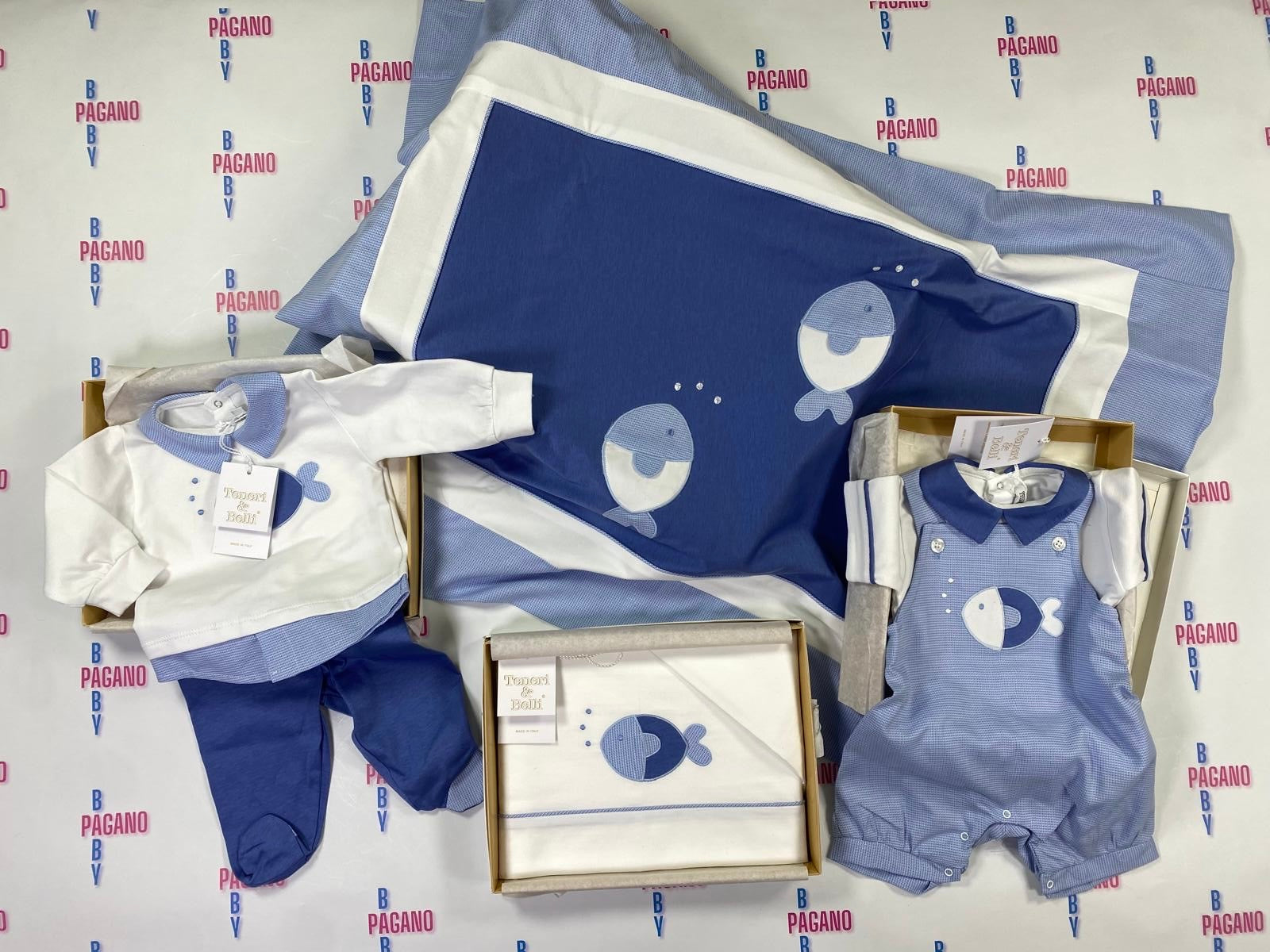 Set BLUE SEA TENERI E BELLI con copertina, lenzuolina, tutina 1 pezzo e 2 pezzi