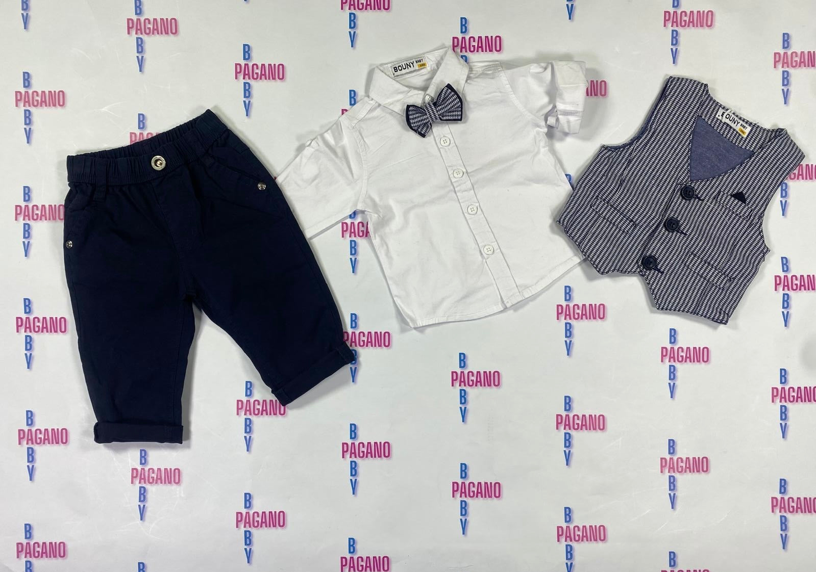 Set BOUNY BABY con pantalone in cotone, camicia, papillion e panciotto