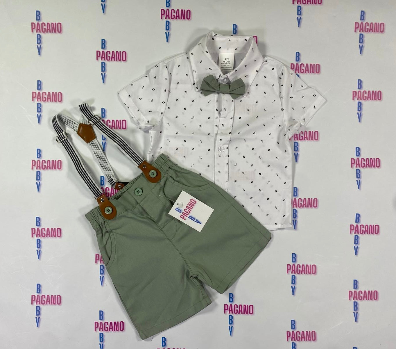 Set ERMANNY con camicia, papillon e bermuda con tracolle
