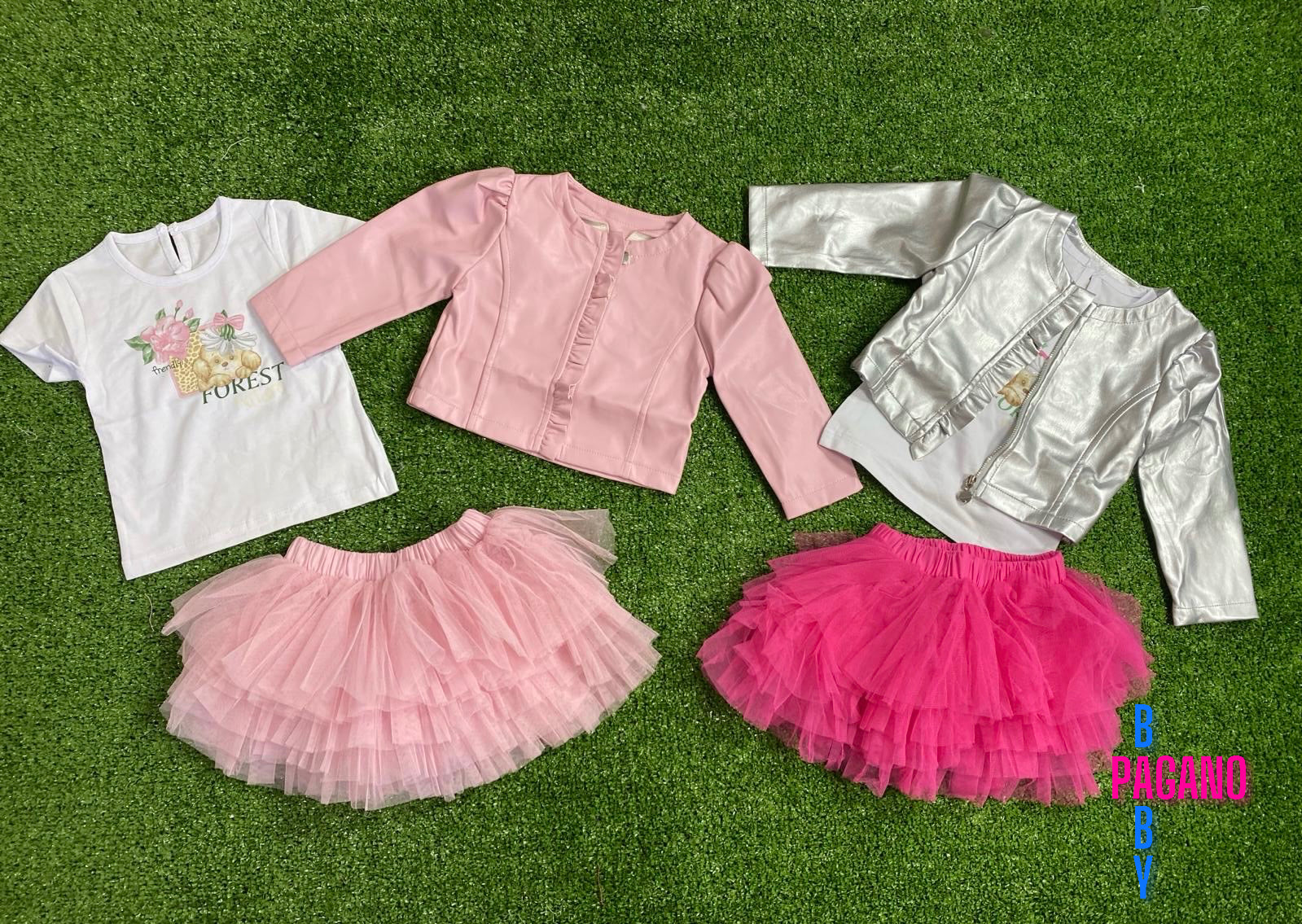 Set FLOWERS DELICIUS con gonna in tulle, t.shirt e giubbottino in eco-pelle