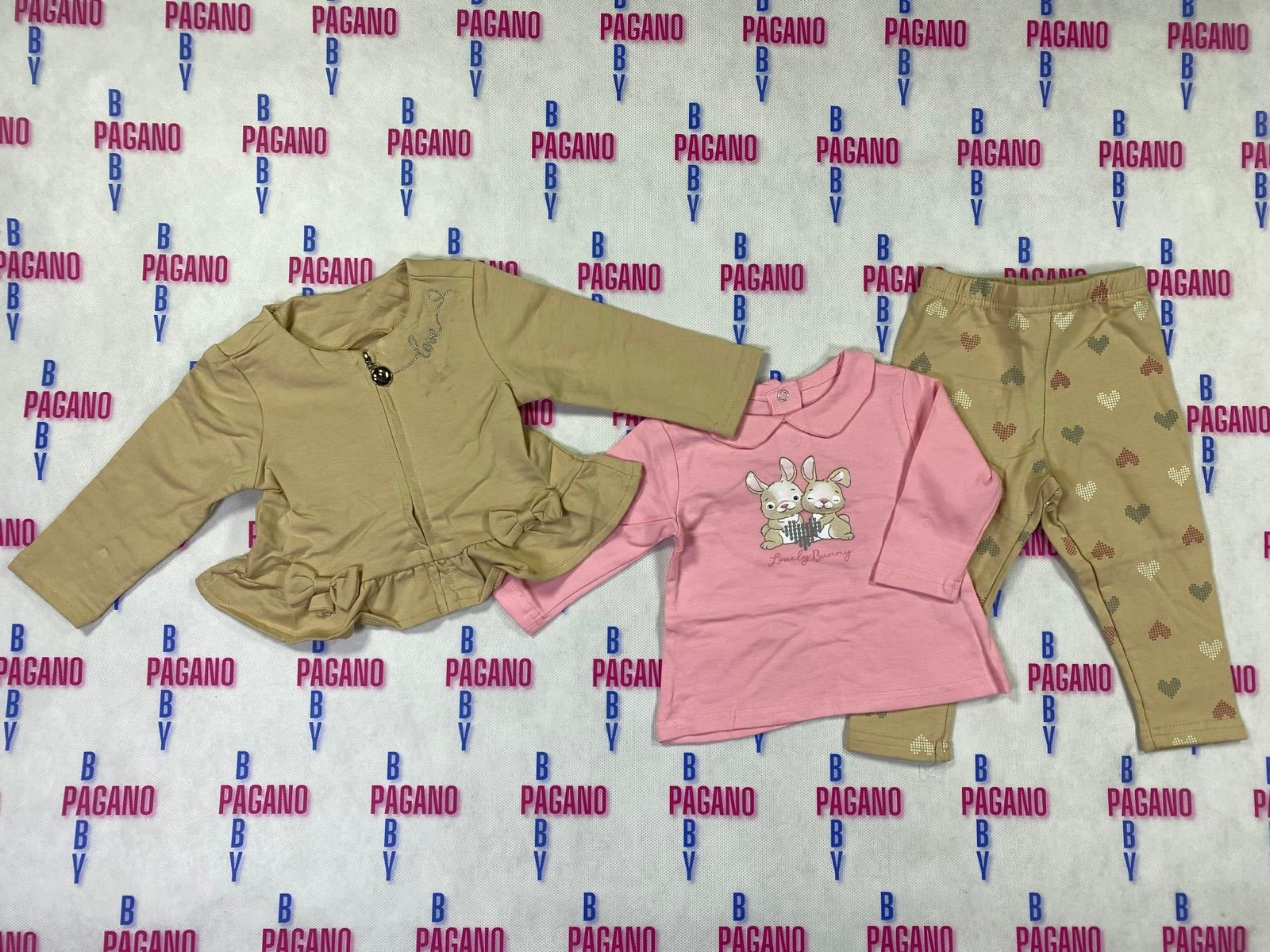 Set LOVELY BUNNY con leggings, maglietta a girocollo e felpa in cotone felpato