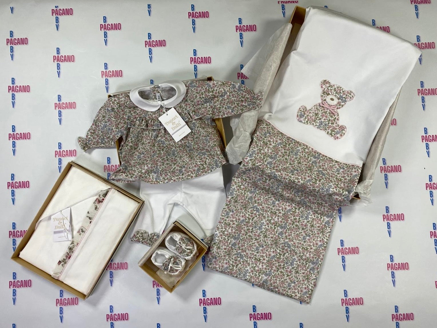 Set MINI FLOWER TENERI E BELLI con copertina, lenzuolina, tutina e scarpette