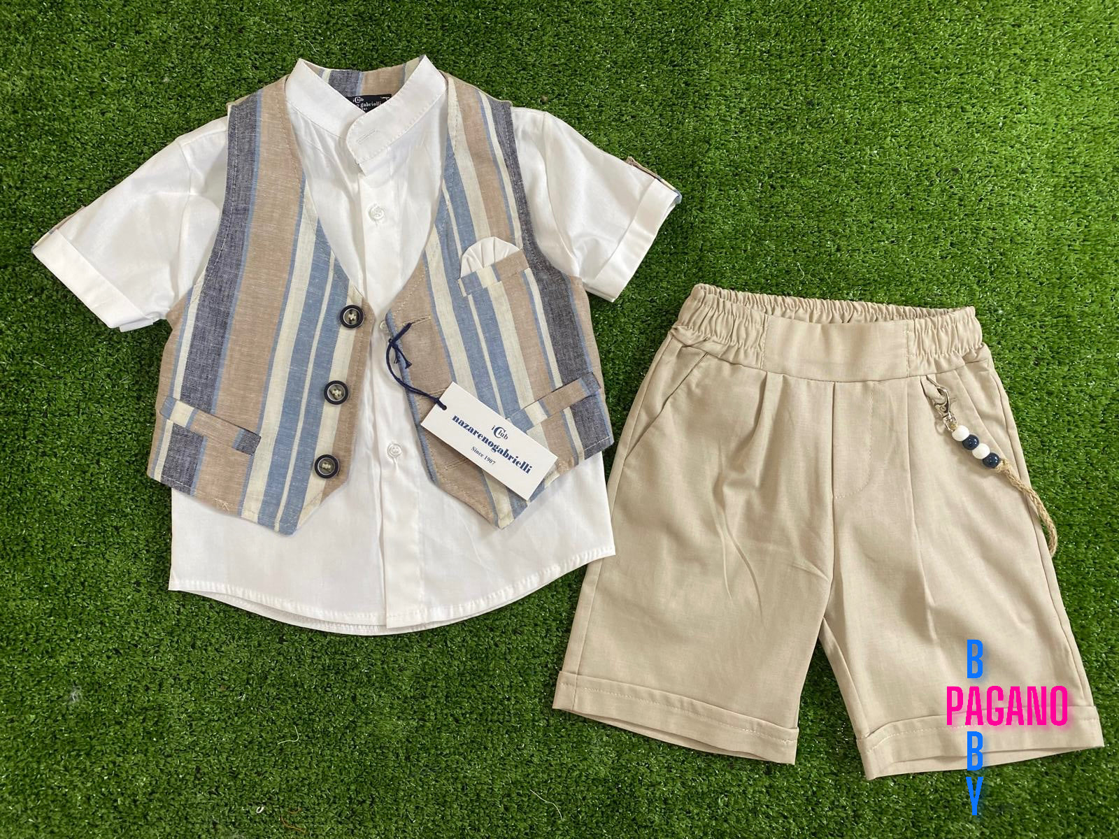 Set NAZARENO GABRIELLI DEVID con bermuda, camicia a mezze maniche collo alla coreana e panciotto