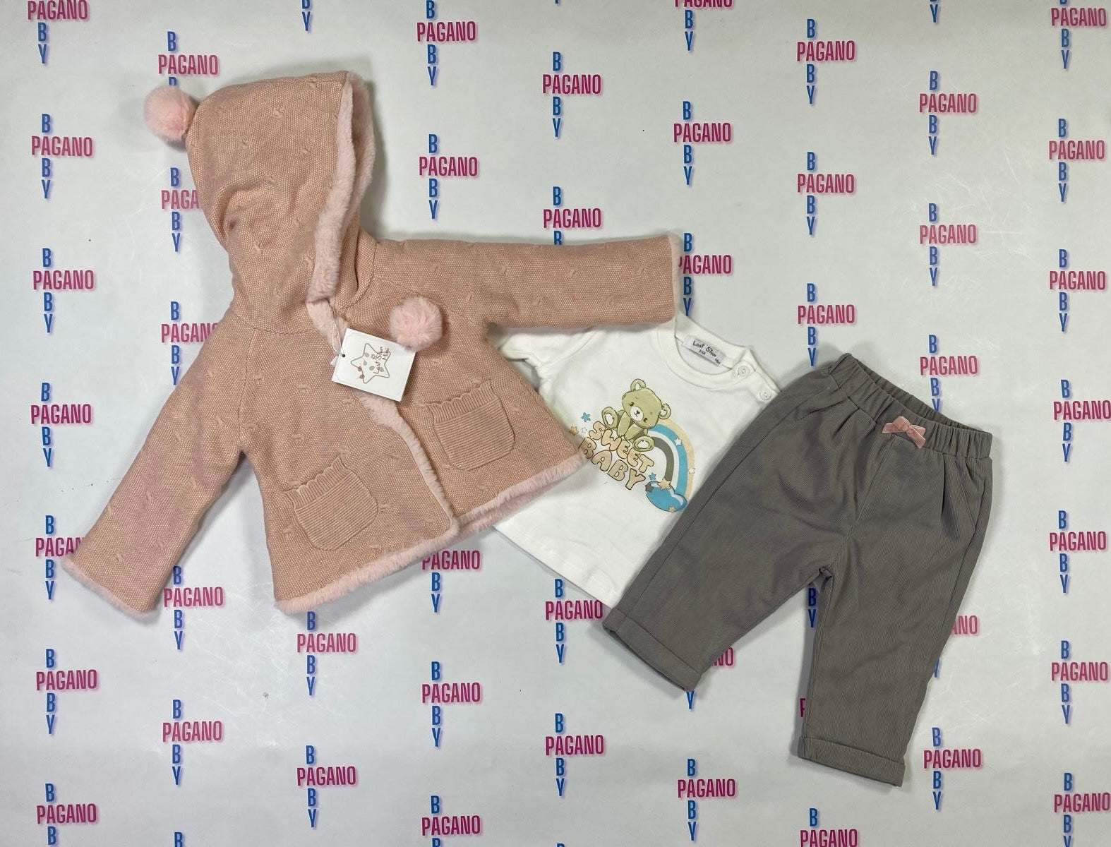 Set NICOLE con pantalone in cotone, maglietta a girocollo e giubbotto con cappuccio!