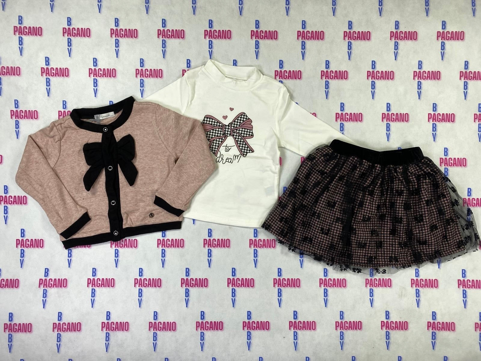 Set TO DREAM con gonna a fantasia lupetto mezzo collo in caldo cotone e cardigan