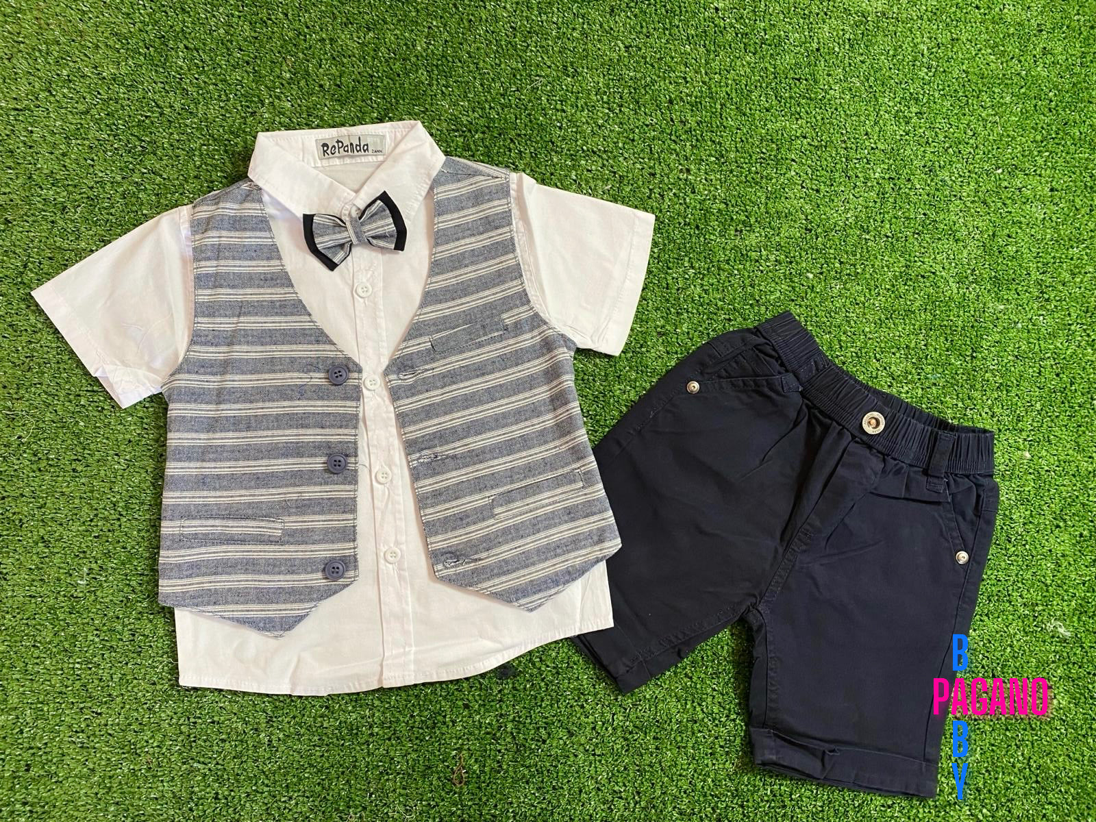 Set TOBBY con bermuda, camicetta a mezze maniche, papillion e panciotto