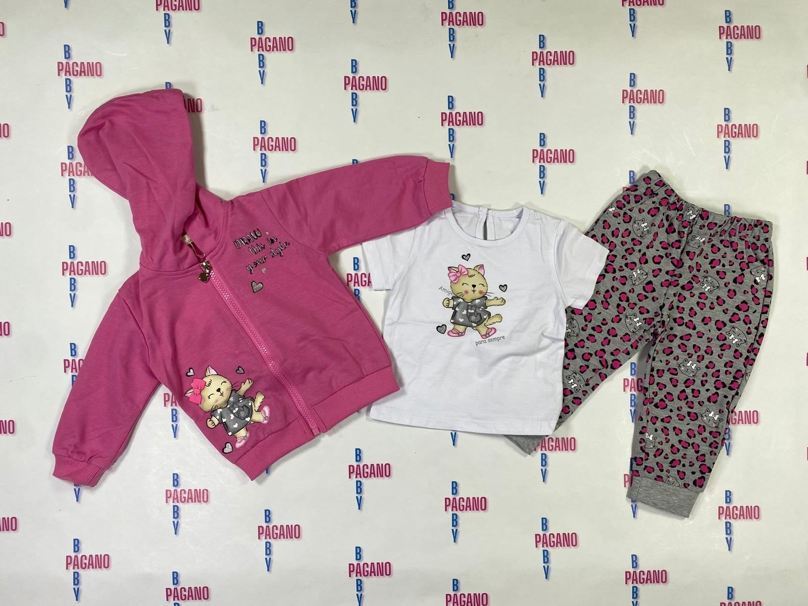 Set tuta 3 pezzi DRAW THIS IN YOUR STYLE con t-shirt, felpa con cappuccio e zip e panta-tuta a fantasia entrambi in cotone!