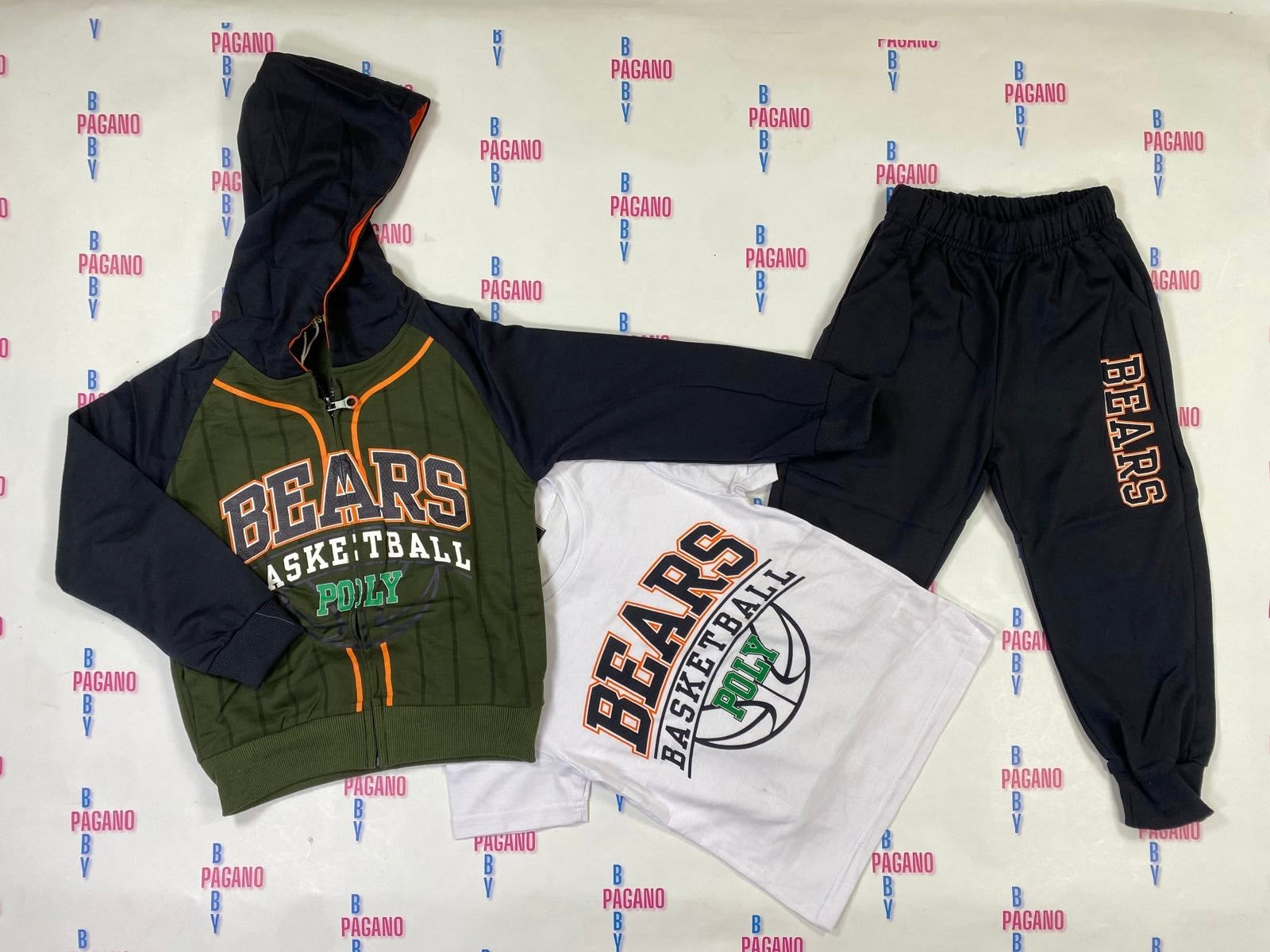 Tuta BEARS BASKETBALL con panta-tuta, t-shirt e felpa con zip e cappuccio entrambi in cotone!