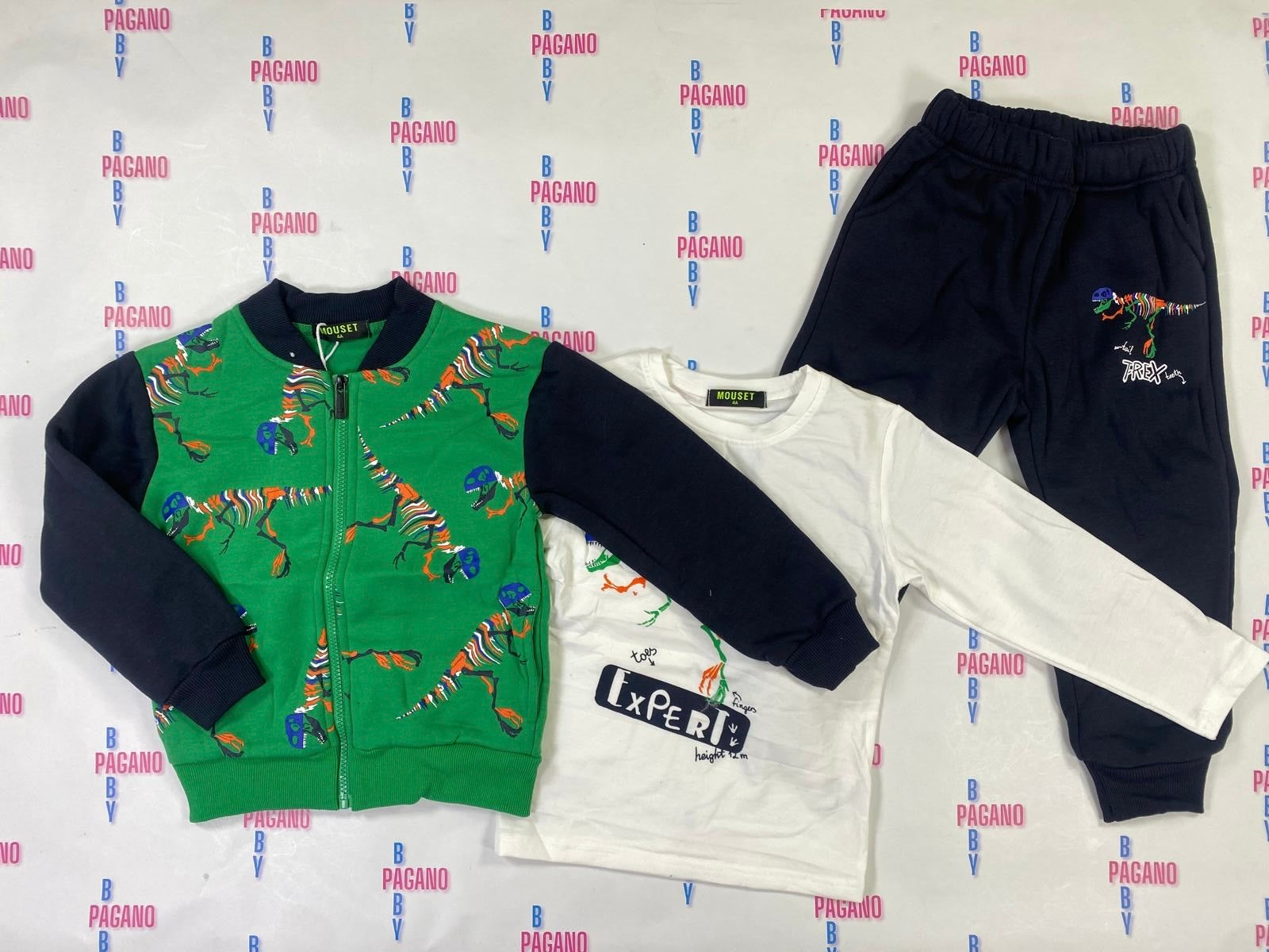 Tuta IXPERI, tre pezzi con panta-tuta, maglietta e felpa con zip a girocollo, in cotone felpato