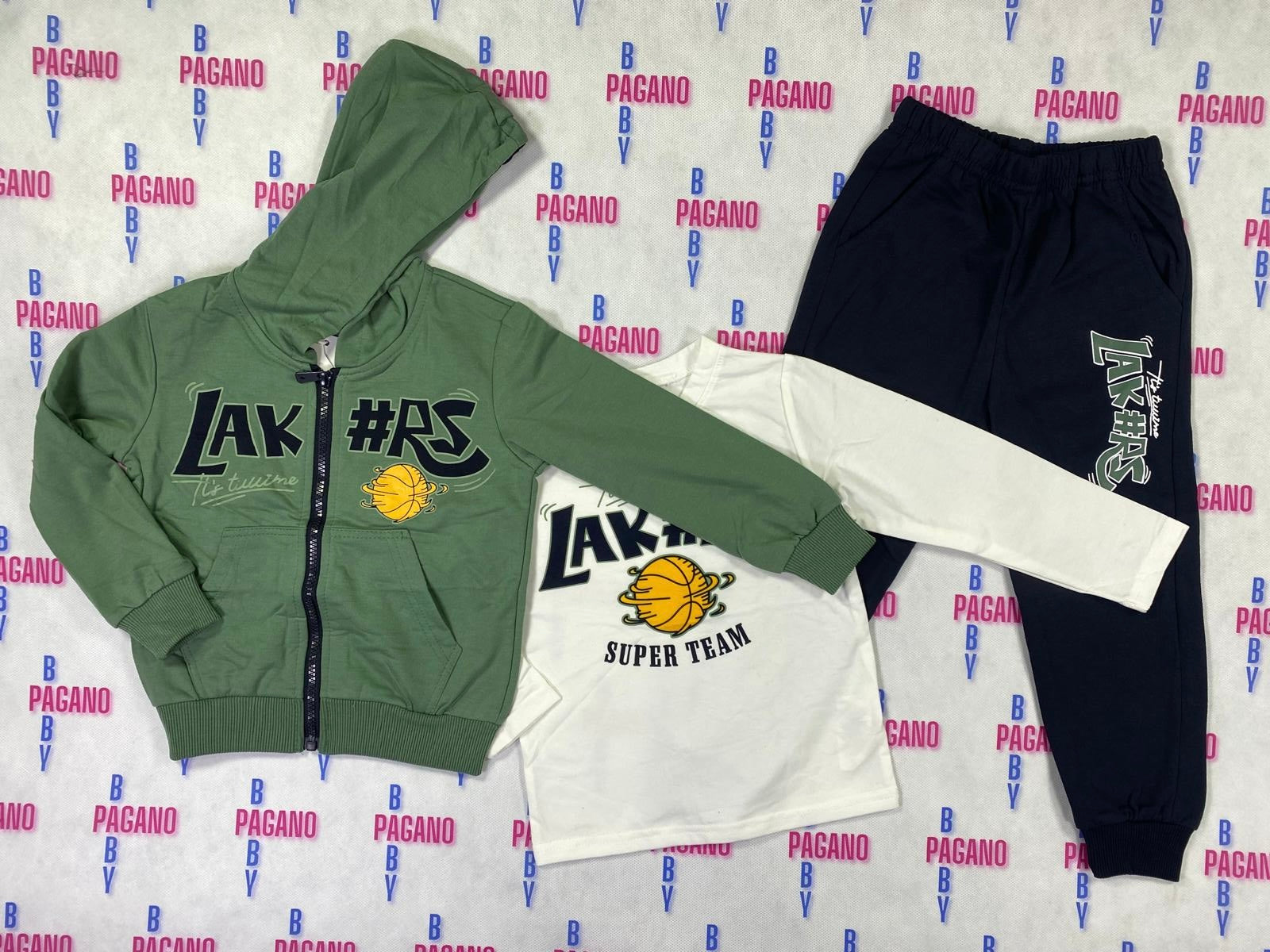 Tuta LAK#RS tre pezzi con panta-tuta, maglietta mezzo collo e felpa con zip e cappuccio in cotone felpato