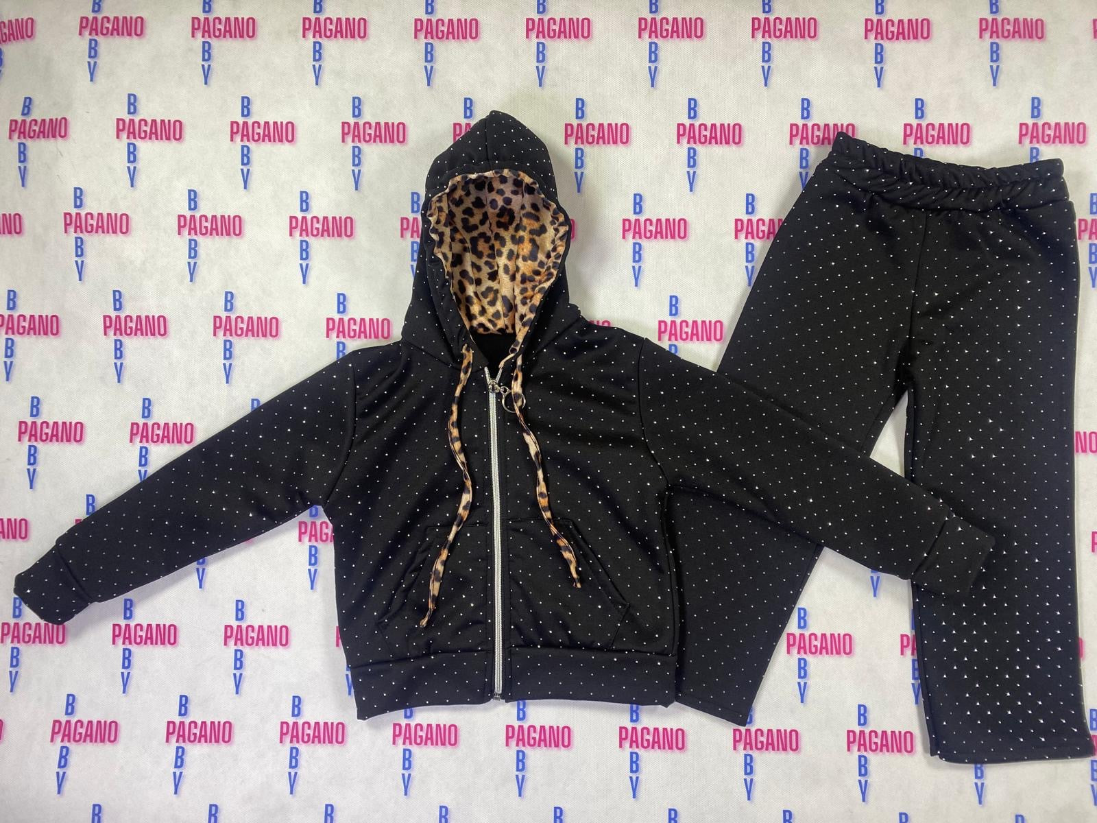 Tuta LEOPARD POI con pantalone a palazzo e felpa con zip e cappuccio, entrambi in cotone felpato