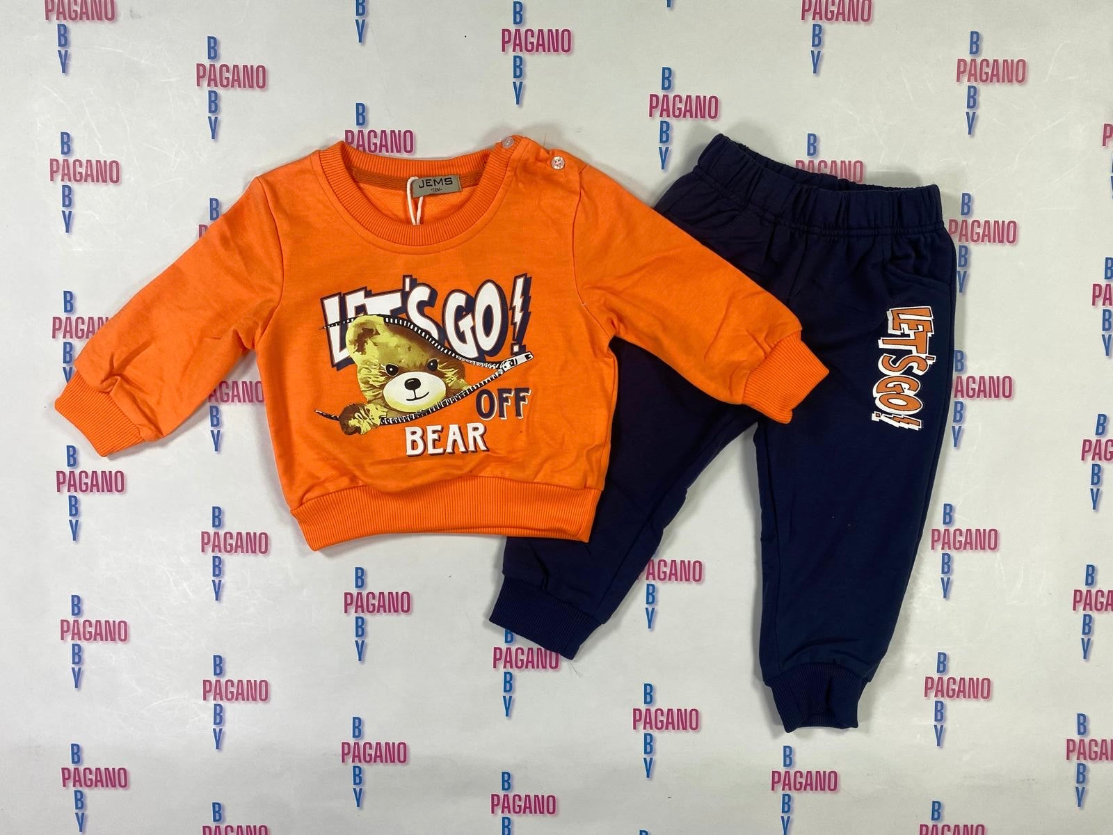 Tuta LET'S GO OFF BEAR due pezzi con panta-tuta e felpa a girocollo in cotone