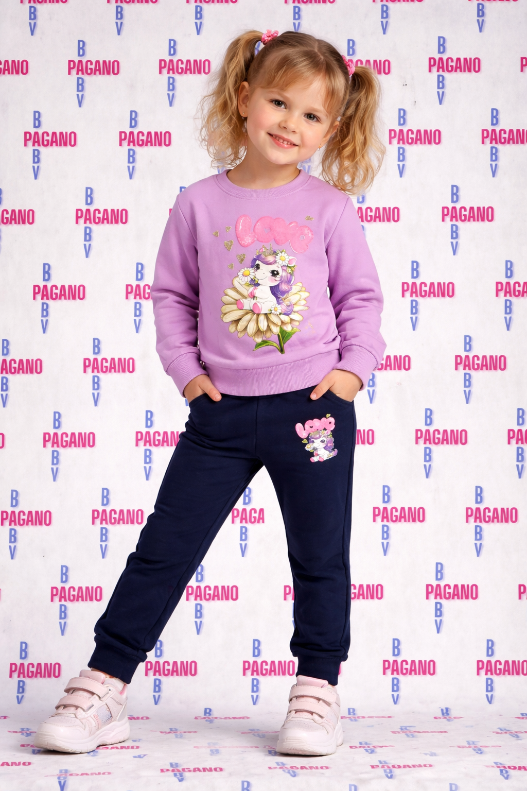Tuta LOVE UNICORN con felpa e panta-tuta, entrambi in cotone felpato