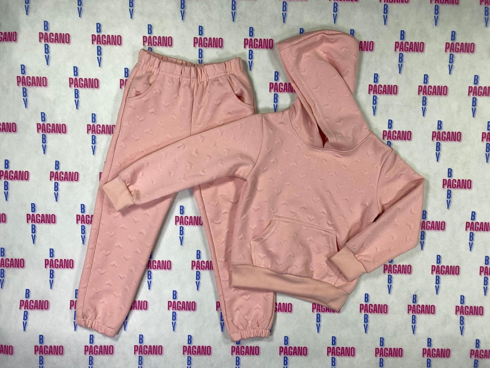 Tuta MINI HEARTS con panta-tuta e felpa con cappuccio, entrambi in cotone garzato