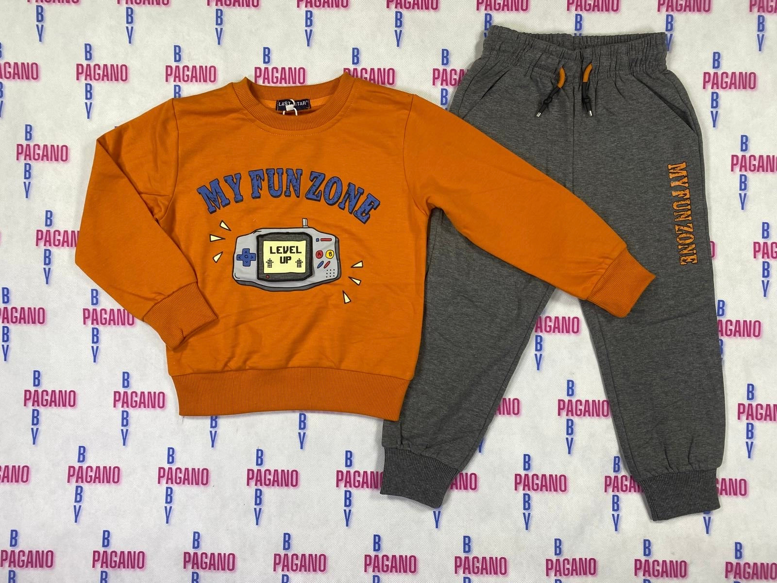 Tuta MY FUN ZONE con panta-tuta e felpa a girocollo, entrambi in cotone felpato!