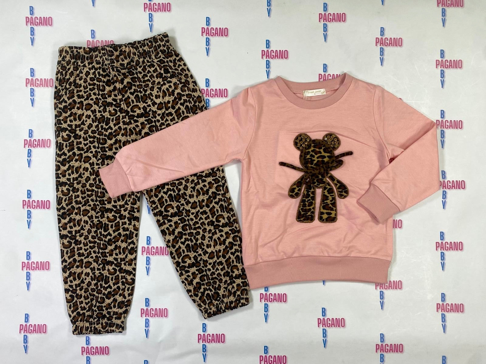 Tuta SWEET TEDDY LEOPARD con panta-tuta e felpa a girocollo, in caldo cotone !