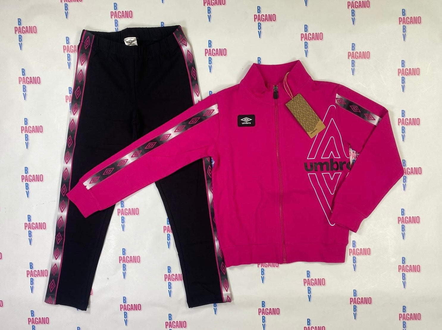 Tuta UMBRO GIRLS DARK PINK con pantatuta e felpa con zip, entrambi in cotone garzato!
