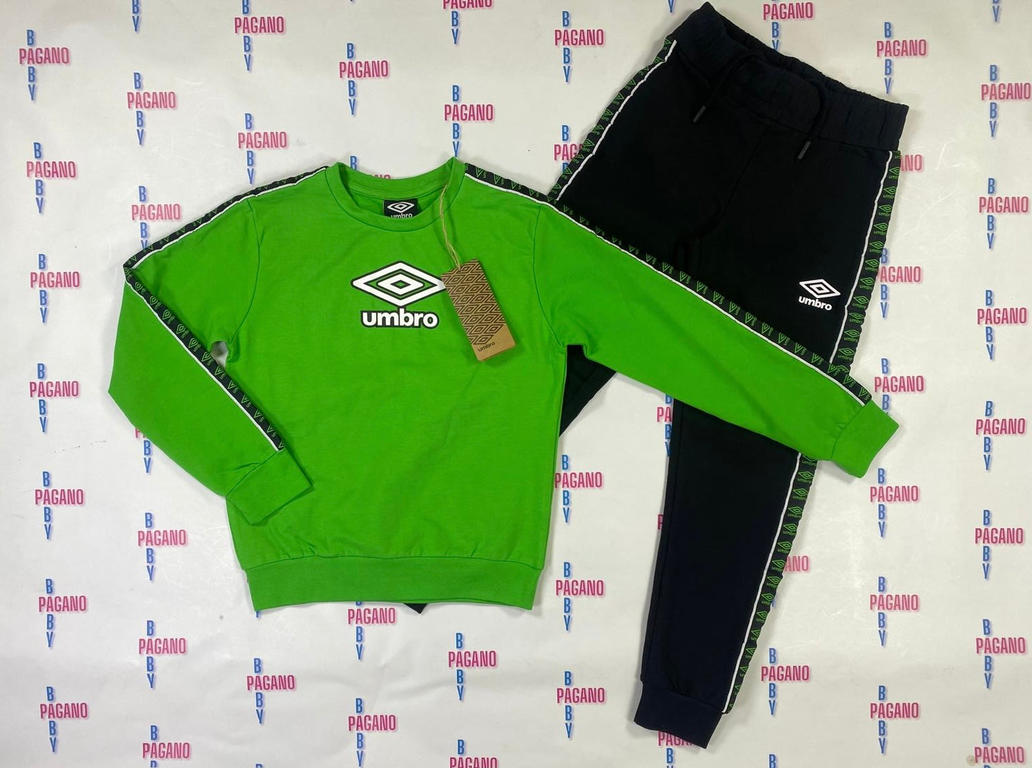 Tuta UMBRO GREEN con panta-tuta e felpa a girocollo, entrambi in cotone garzato